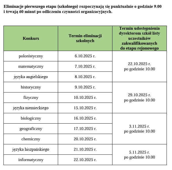 Informujemy, że szkolne eliminacje zostaną przeprowadzone w następujących terminach: