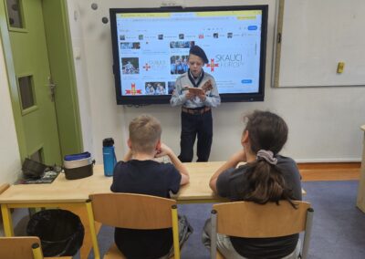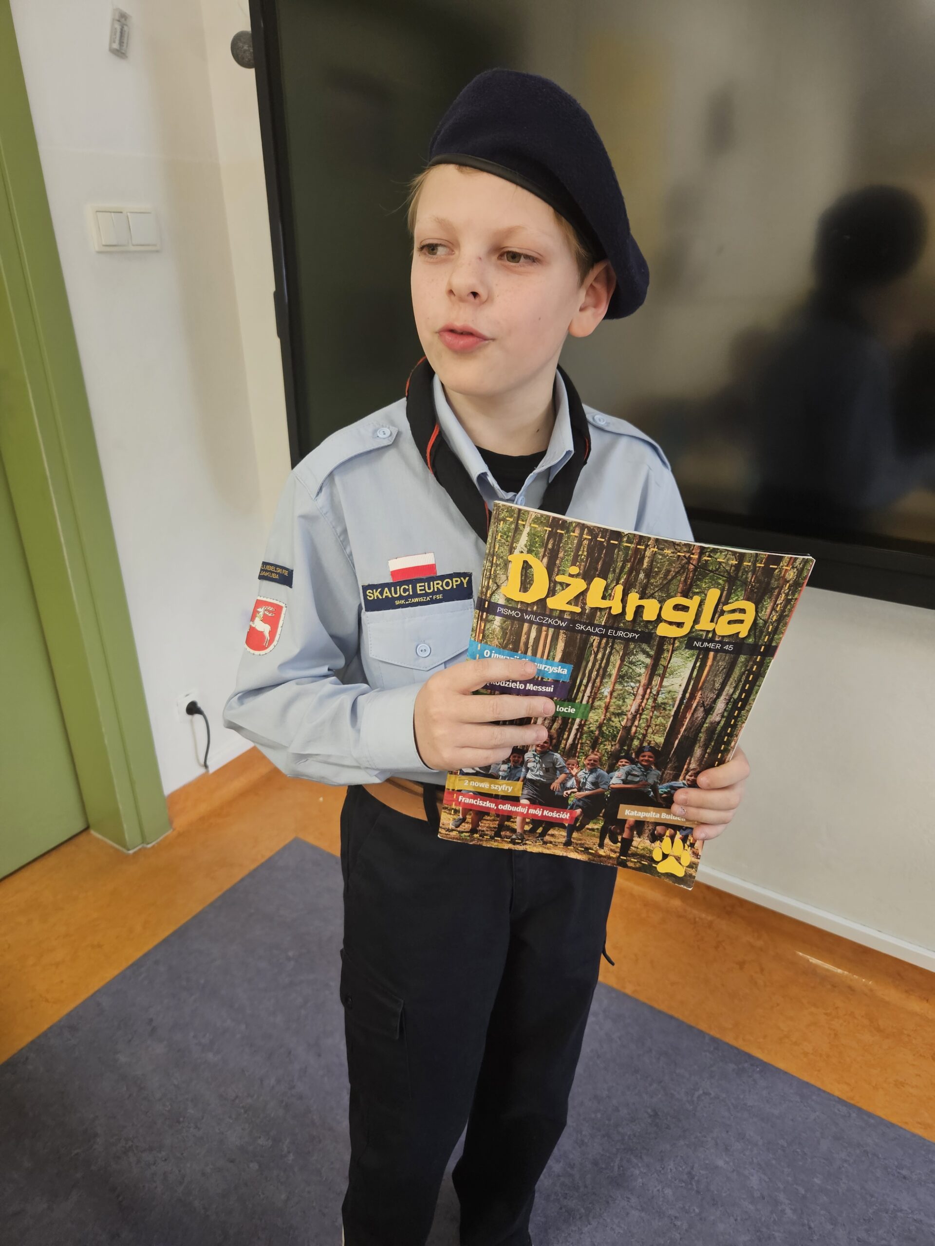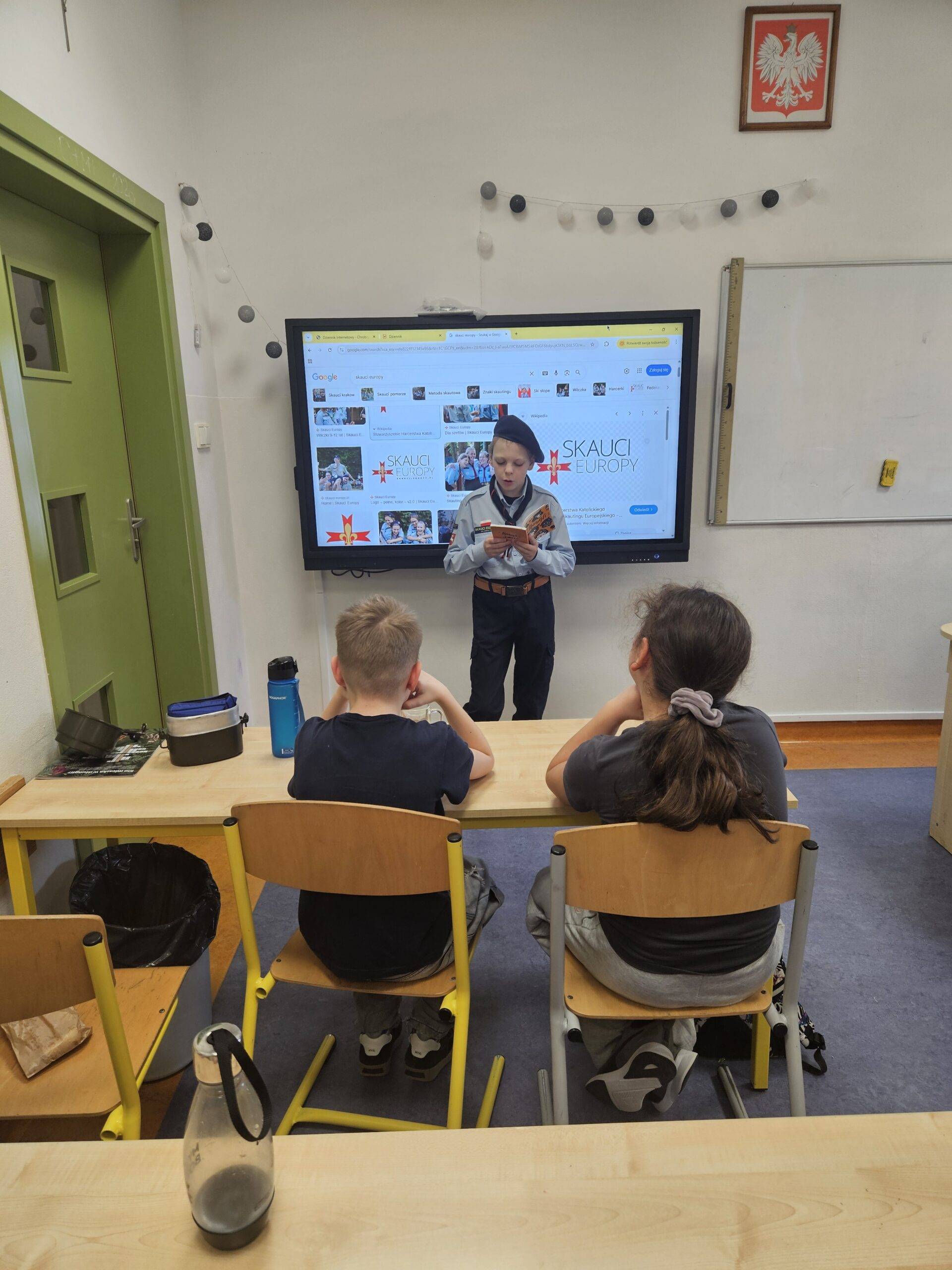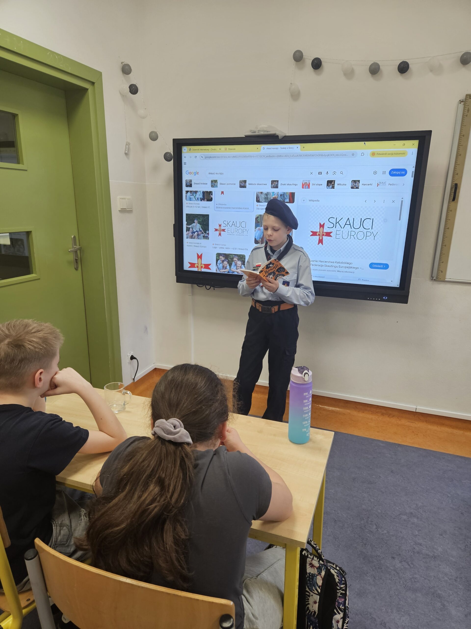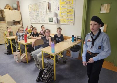12.03 na lekcji wychowawczej Adam Dzięcioł, uczeń kl.4a prezentował swoją wielką pasję do harcerstwa. Opowiadał jak to się stało, że trafił do takiej organizacji, co robi podczas spotkań, czy wyjazdów, prezentował mundur, menaszkę, inne sprzęty i wyposażenie harcerza. Opowiadał o zasadach, dyscyplinie, ale również checi niesienia pomocy i dobrej zabawie.