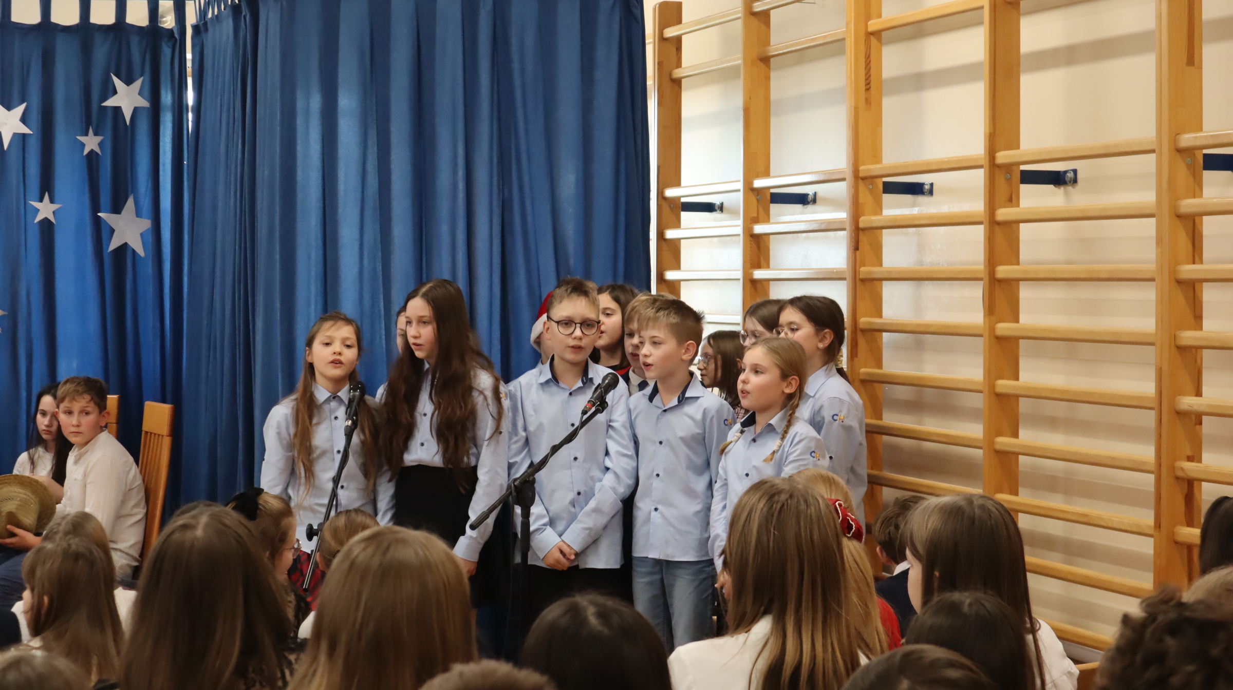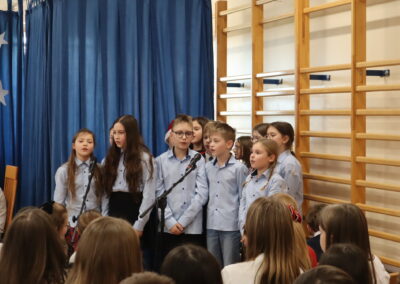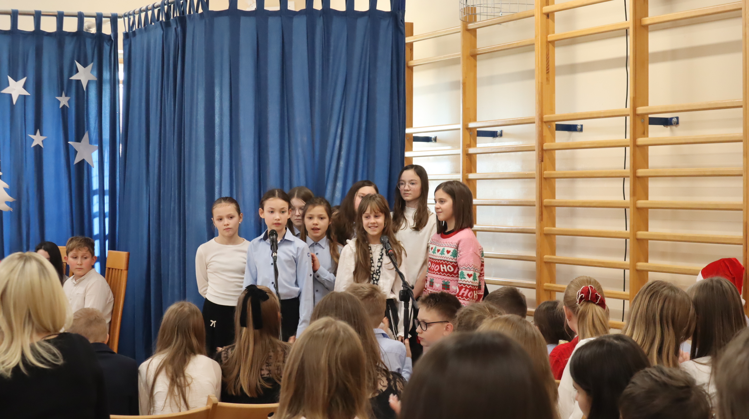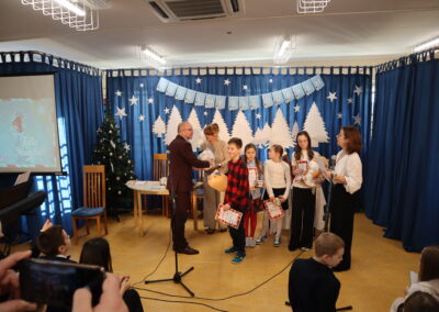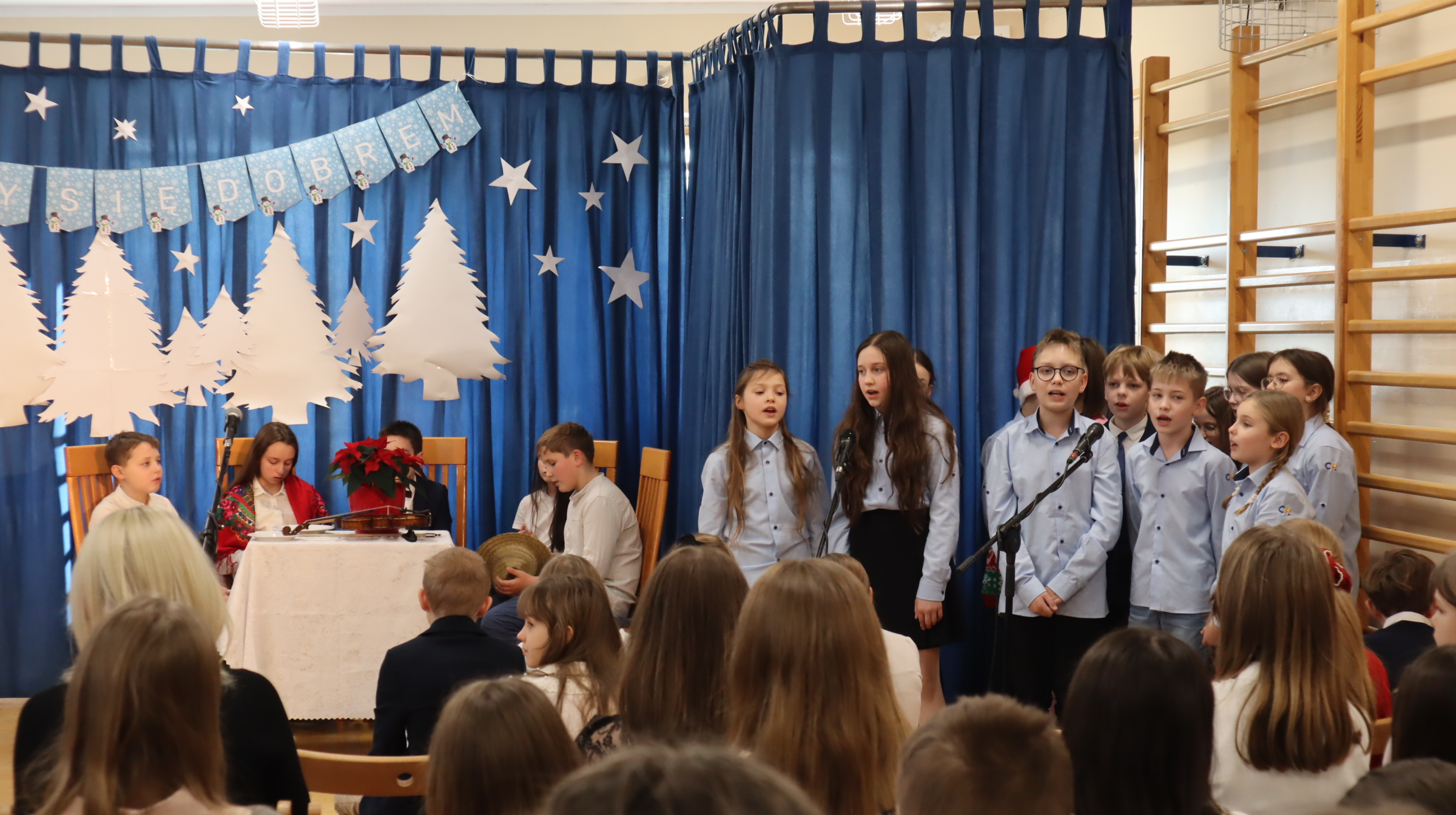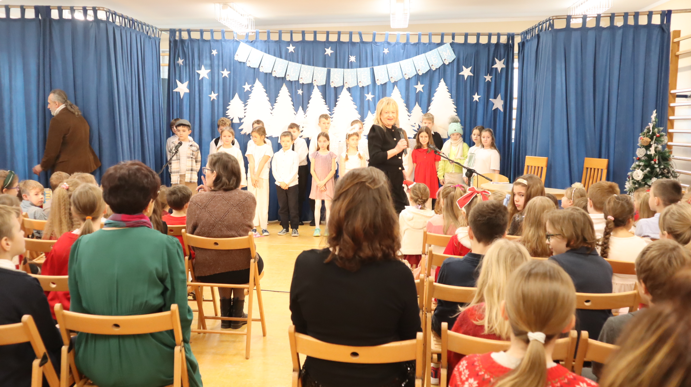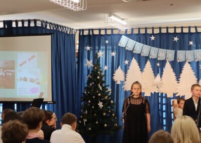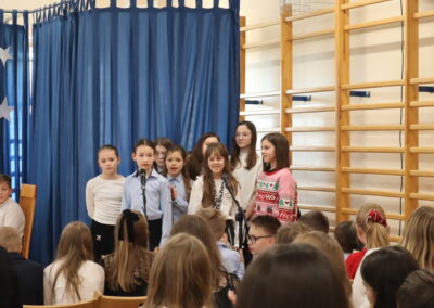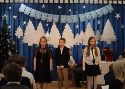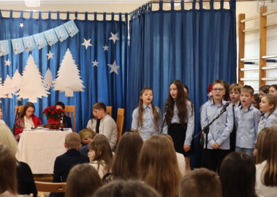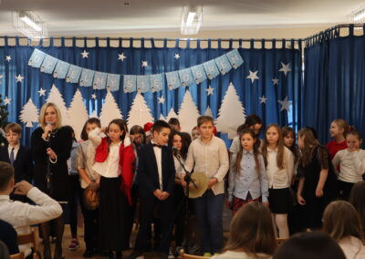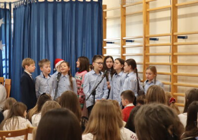 19 grudnia 2025 r. wszyscy uczniowie wraz z nauczycielami spotkali się w sali gimnastycznej, aby świętować zbliżające się Boże Narodzenie.