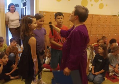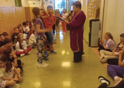 W dniach od 26 do 31 maja w naszej szkole obchodziliśmy Dni Książki, których celem była promocja czytelnictwa oraz zachęcenie uczniów do częstszego odwiedzania biblioteki szkolnej. Przez cały tydzień na naszych uczniów czekały różnorodne konkursy czytelnicze i wyzwania literackie. Uczestnicy mogli m.in. odgadywać tytuły bajek i lektur, wyszukiwać książki o określonej tematyce – np. podróżniczej, o zwierzętach (kotach i psach) czy rycerzach.
