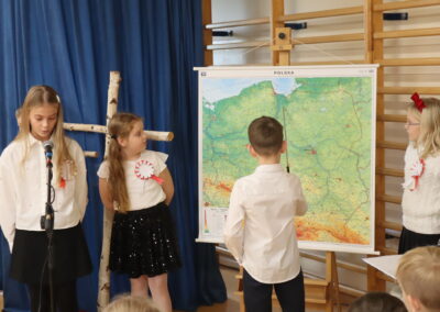 Uczniowie zaprezentowali program, który zachęcił nas również do ciągłej troski i walki o to, by być „Polką i Polakiem” każdego dnia. Świetna gra aktorów, wspaniale dobrane utwory muzyczne „nastroiły” nas patriotycznie na bardzo długi czas. Wychowawczyniom i dzieciom z serca dziękujemy, zresztą sami zobaczcie i posłuchajcie