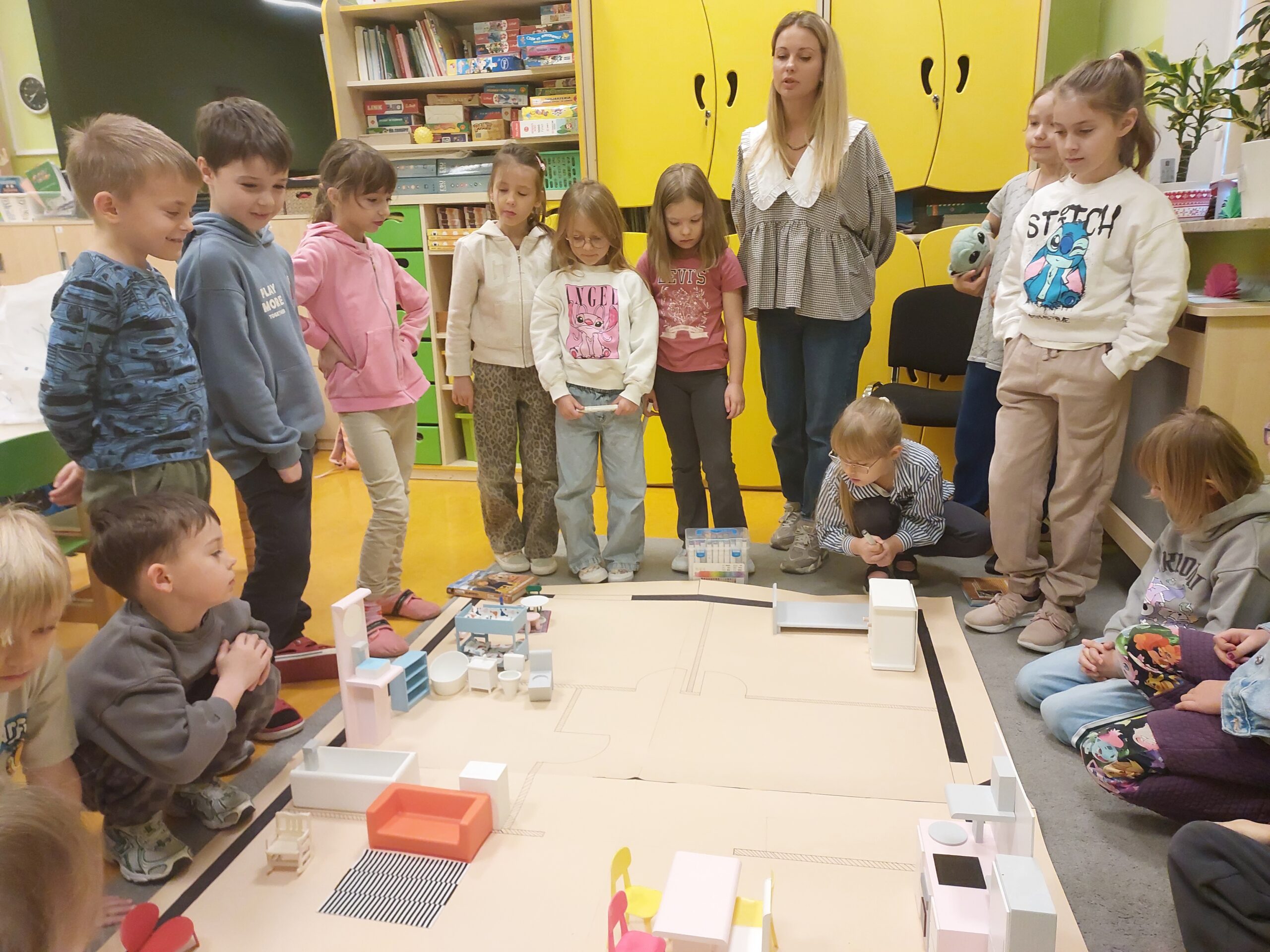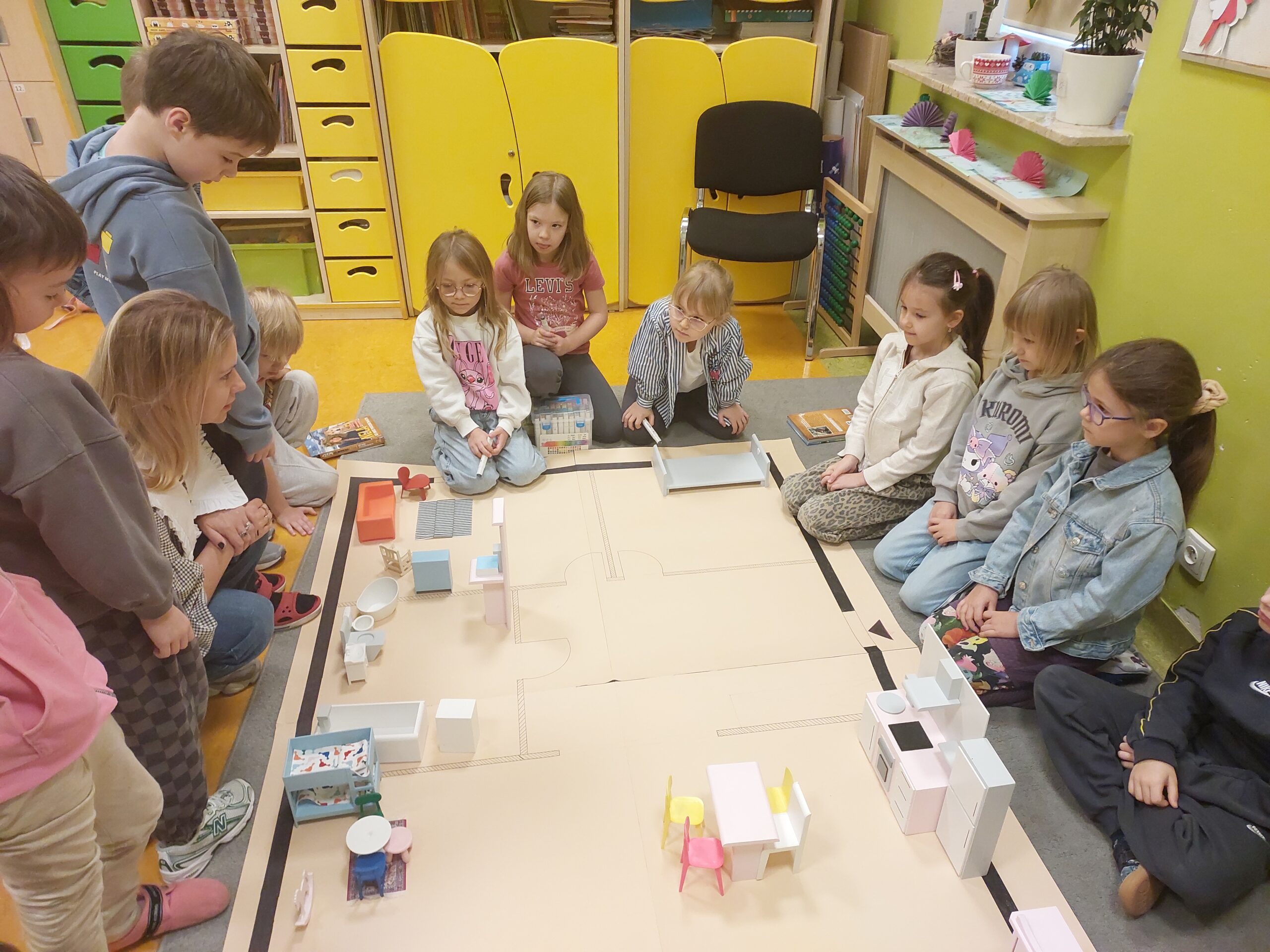 Klasa 1a poznała na niecodziennej lekcji jeden z zawodów związanych z powstawaniem domu. 18 października odwiedziła nas mama Blanki, Pani Joanna Kabała -Szubstarska, która jest architektem wnętrz. Dzieci miały okazję zobaczyć jak architekt tworzy projekt w komputerze. Największą atrakcją  był wspólny klasowy projekt wystroju mieszkania. Każde dziecko wykonało również składany dom, który ozdobiło według własnego pomysłu. Pierwszaki otrzymały tez prezenty za aktywny udział w zajęciach. Bardzo dziękujemy Pani Joannie za wspaniałą lekcję.