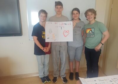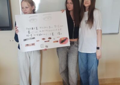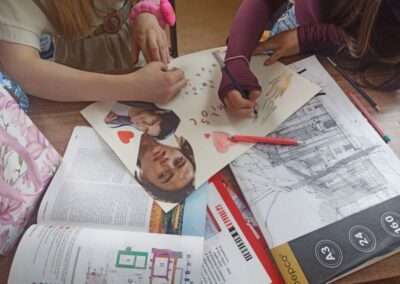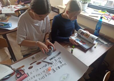 Na zakończenie pracy z lekturą „Mały Książę” uczniowie 7b wykonali kolaże prezentujące cytaty z tej ponadczasowej książki oraz ich metaforyczne ilustracje. Rozmawiali też o najważniejszych wartościach, które odkryli w lekturze i o tym, jakie może mieć ona znaczenie dla współczesnych czytelników. Lekcje z „Małym Księciem” okazały się prawdziwą lekcją życia.