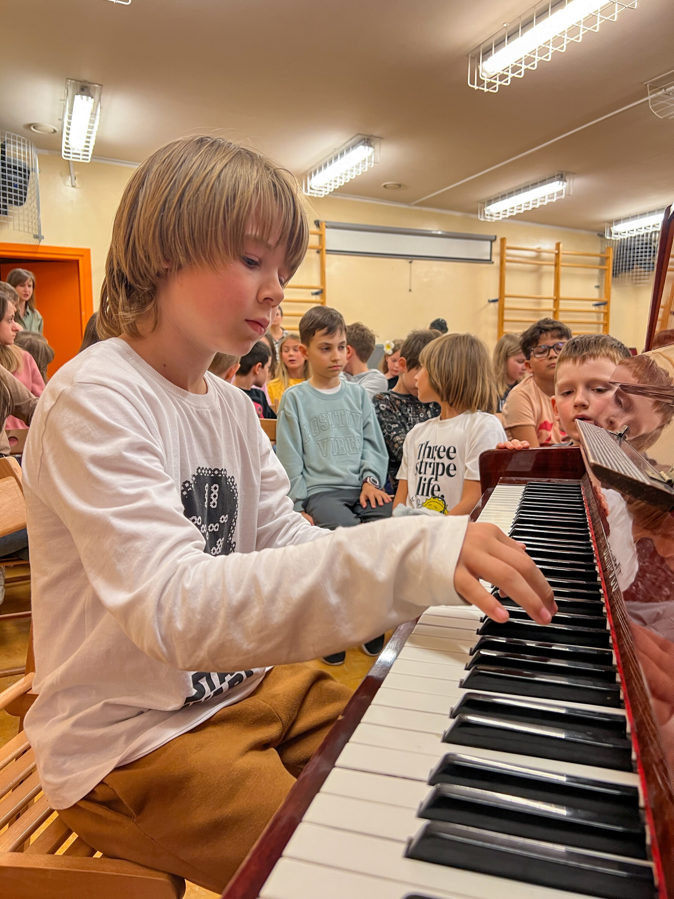 Oklaskiwaliśmy, klaskaliśmy i nie ma co ukrywać, wznosiliśmy radosne okrzyki dla 20 występujących osób lub występujących grup z klas 1-8.
