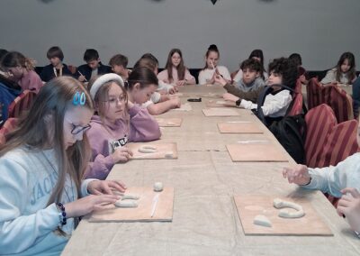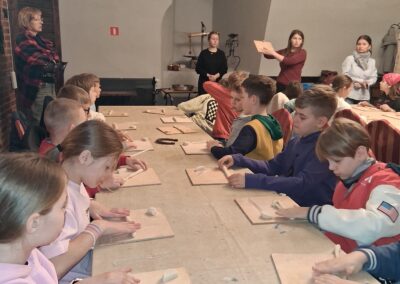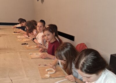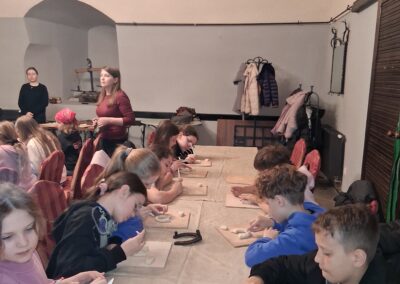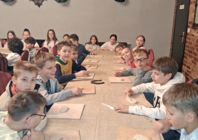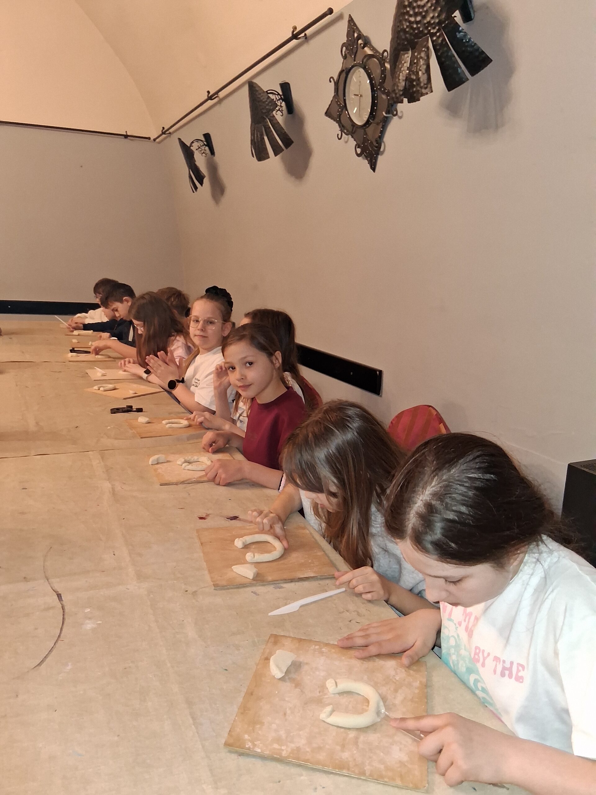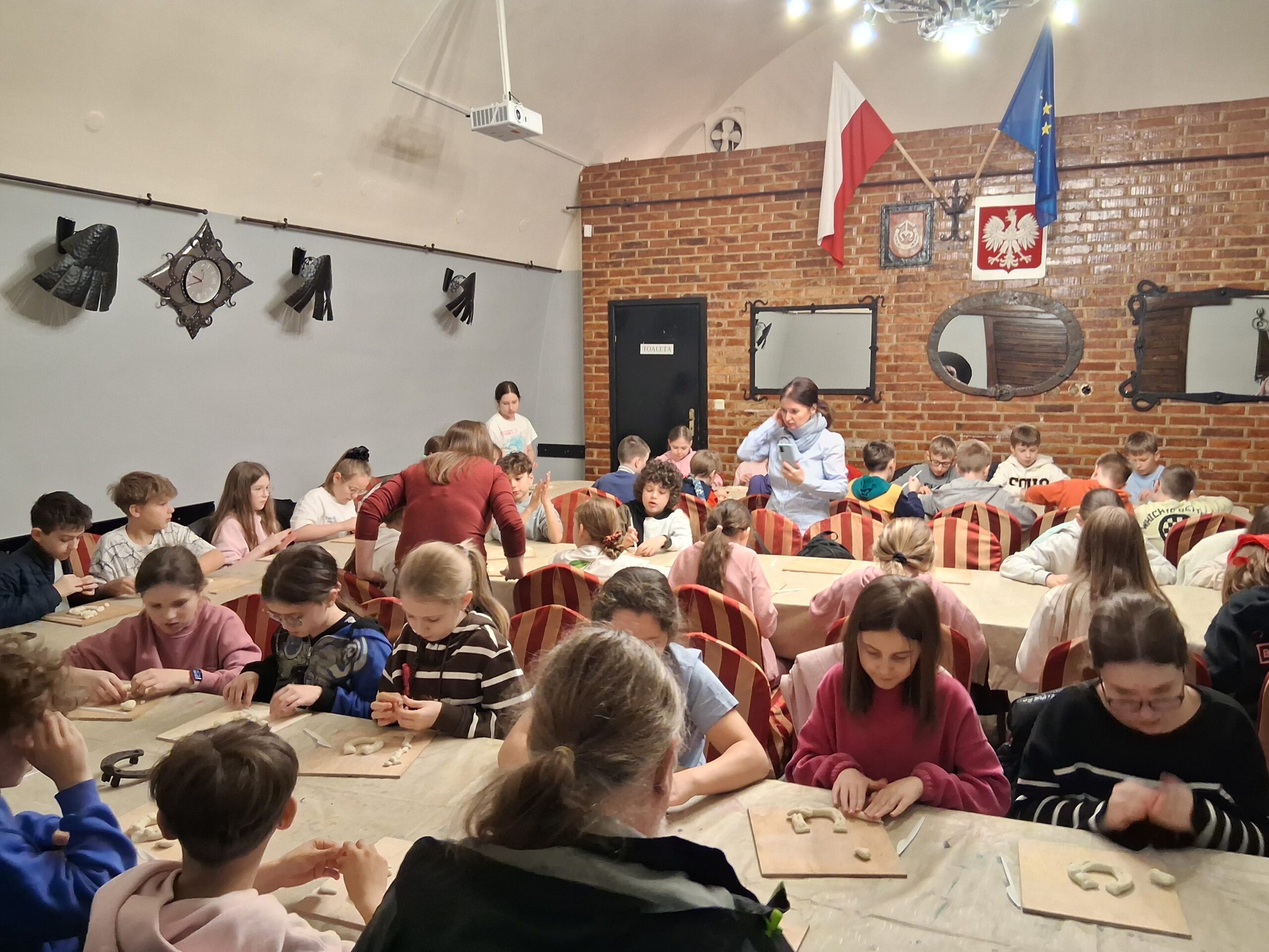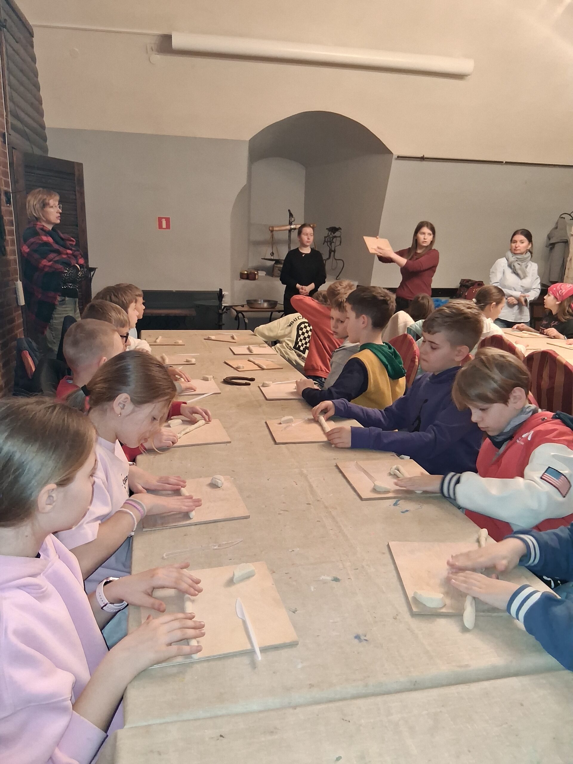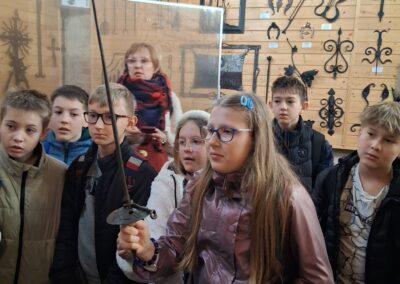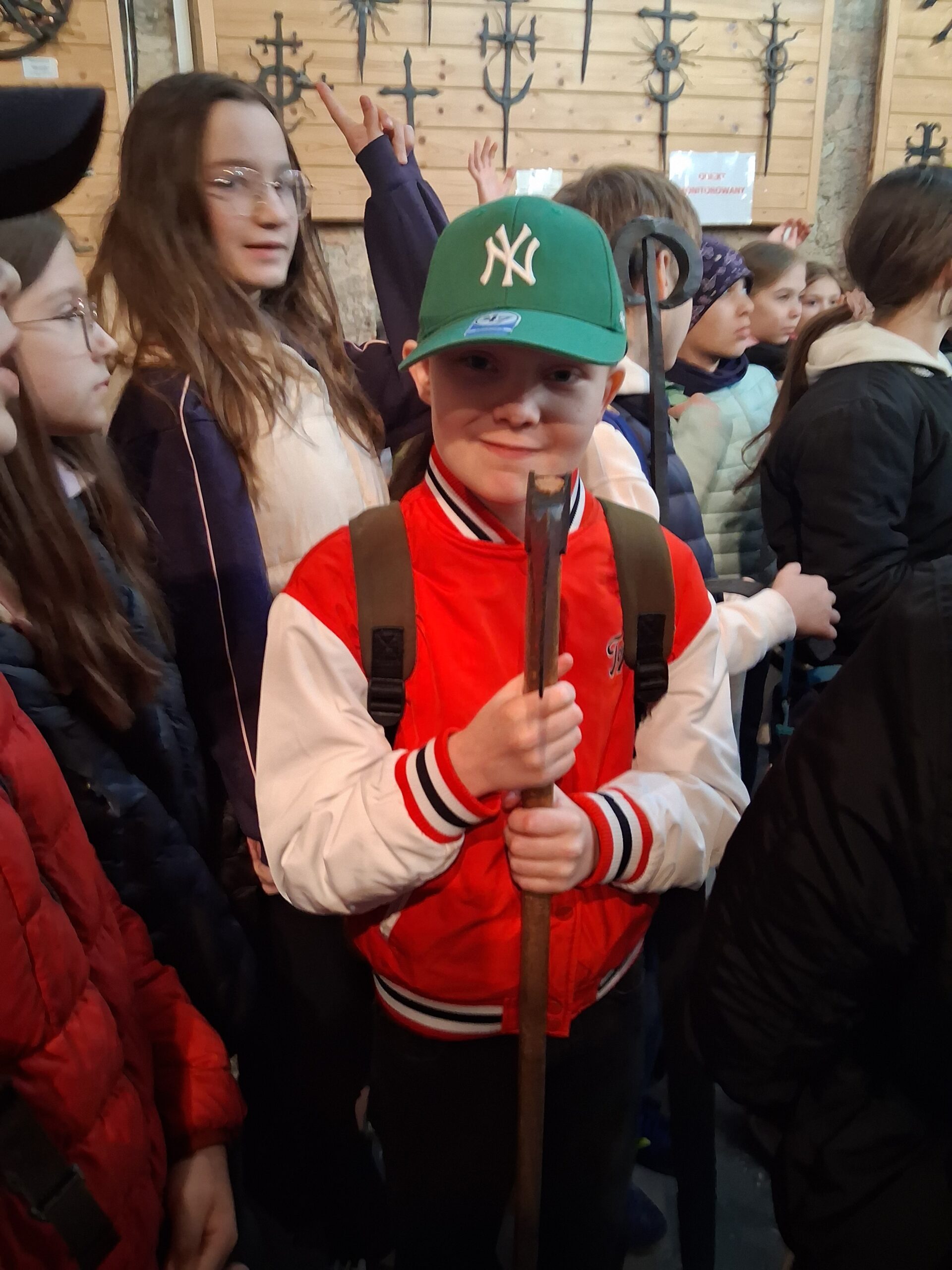 16 kwietnia klasy czwarte zwiedzały Muzeum Kowalstwa w Wieży Ariańskiej w Wojciechowie. Uczniowie podziwiali niezwykłe eksponaty wykute z żelaza, słuchali opowieści o pracy kowala, poznawali różne rodzaje podków oraz miejscowe legendy.  Szczególnie atrakcyjne okazały się warsztaty pt. 'Podkowa z masy solnej’, w czasie których czwartoklasiści formowali własne podkowy z masy solnej, ucząc się jak nadać im odpowiedni kształt. Wypieczone wyroby uczniowie zabrali ze sobą na pamiątkę i oczywiście na szczęście.