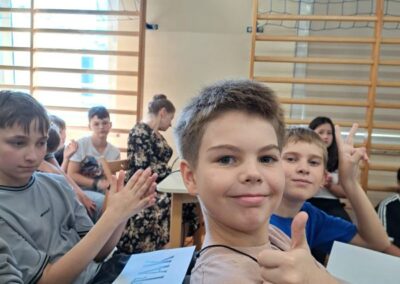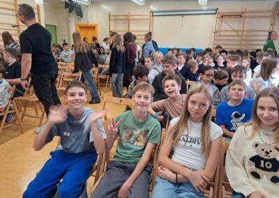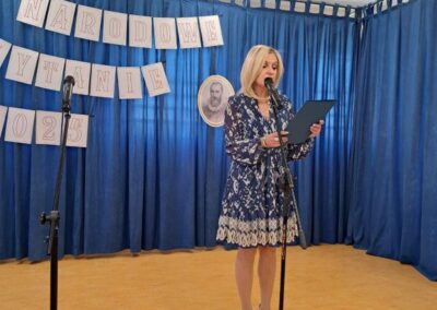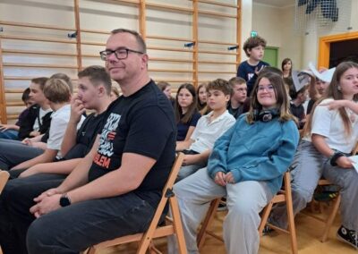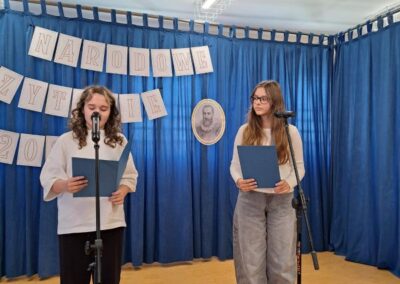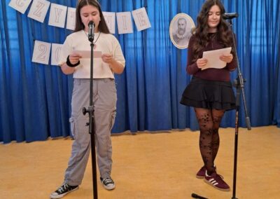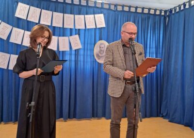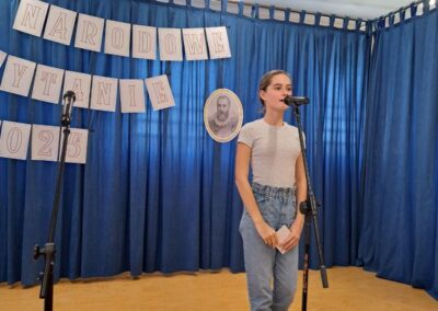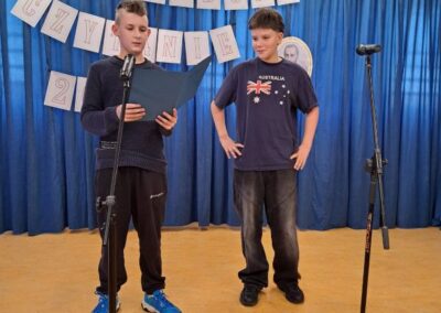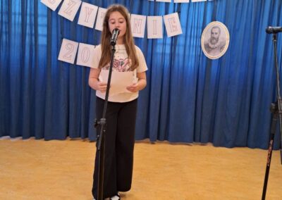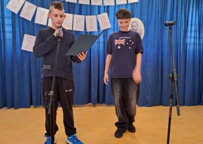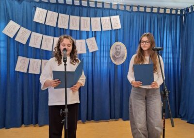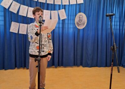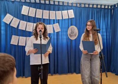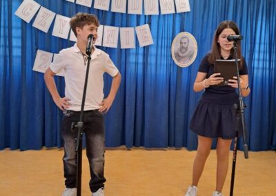 25 września 2025 r. uczniowie klas szóstych, siódmych i ósmych wzięłi udział w szkolnych obchodach Narodowego Czytania poezji Jana Kochanowskiego. Przedstawiciele klas przeczytali wybrane fraszki poety. W wydarzenie włączyli się również pani dyrektor Małgorzata Owsik, pan prezes Educo Waldemar Leszcz oraz polonistka pani Beata Węglińska, którzy przeczytali pieśni Kochanowskiego.