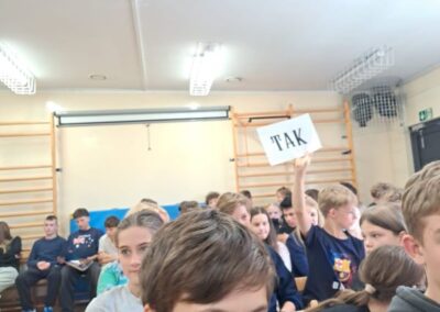 Uczniowie wzięli udział w rywalizacji klas na temat biografii Jana Kochanowskiego. Wygrała klasa 8b, odpowiadając poprawnie na najwięcej pytań.