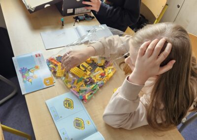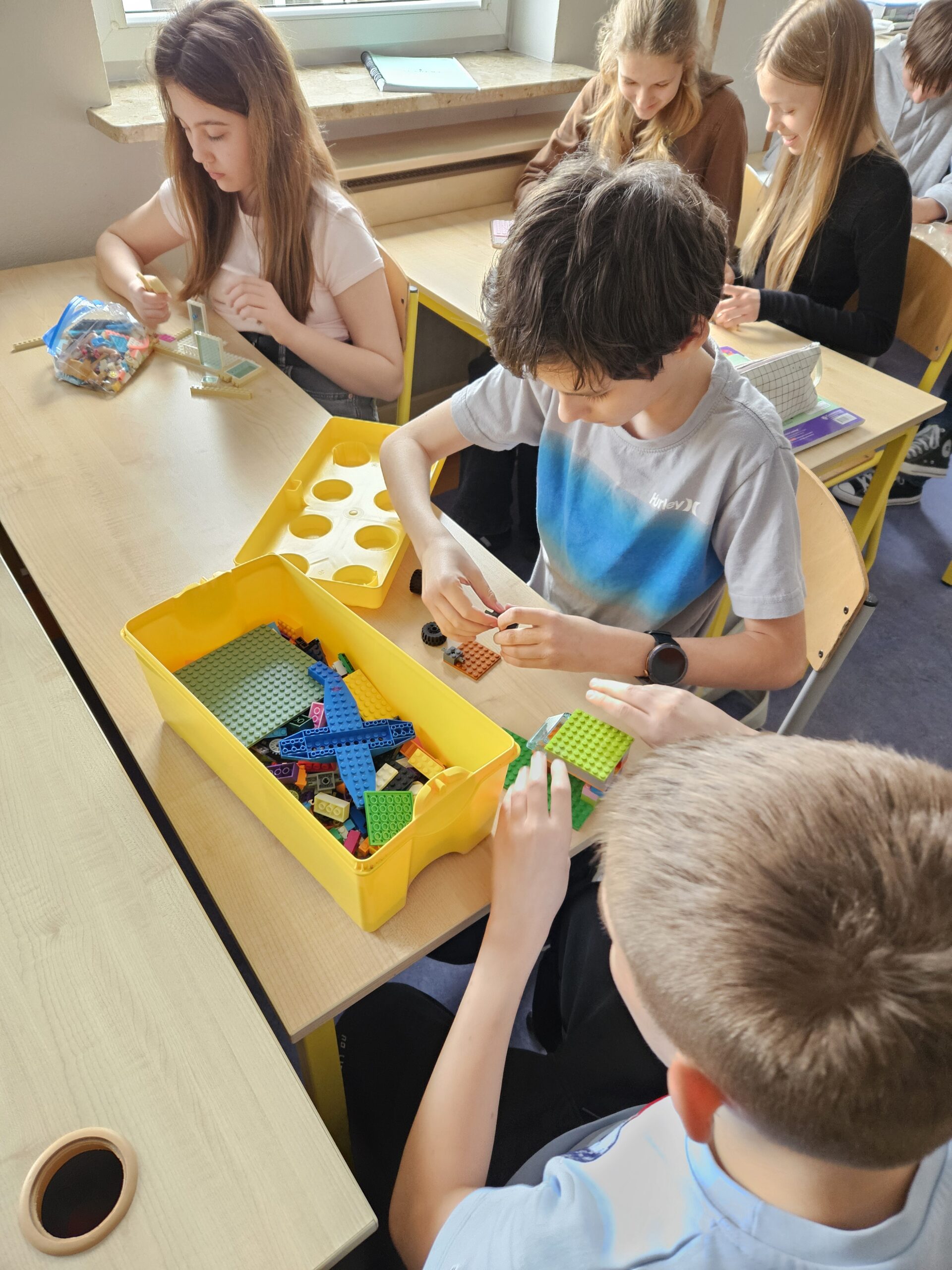 Na ostatniej lekcji klasa 6a tworzyła wspaniałe budowle z klocków Lego, a przy okazji uczyła się pracować zgodnie z  instrukcją!