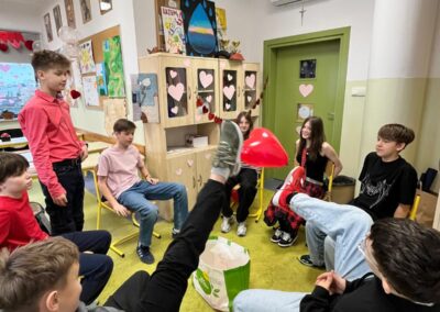 W klasie 6c odbyły się zabawy walentynkowe, które tuż przed feriami wprowadziły wszystkich w jeszcze bardziej radosny nastrój. Uczniowie brali udział w grach integracyjnych, quizach oraz konkursach związanych z tematyką przyjaźni i życzliwości. Nie zabrakło walentynkowej poczty i drobnych upominków. Wspólna zabawa była doskonałą okazją do budowania relacji i spędzenia czasu w serdecznej atmosferze.