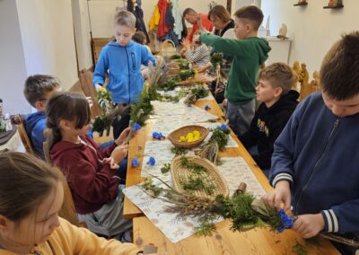 24.03 kl.4a wybrała się na zorganizowane przez rodziców warsztaty wykonywania palm lubelskich, które odbyły się na Starym Mieście. Uczniowie precyzyjnie, starannie i z wielkim zaangażowaniem pracowali ćwicząc jednocześnie cierpliwość. W efekcie powstały przepiękne palmy, z którymi dzieciaki pójdą w niedzielę do kościoła. Życzymy wszystkim wesołego Alleluja!