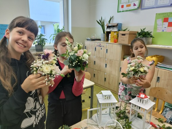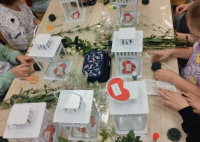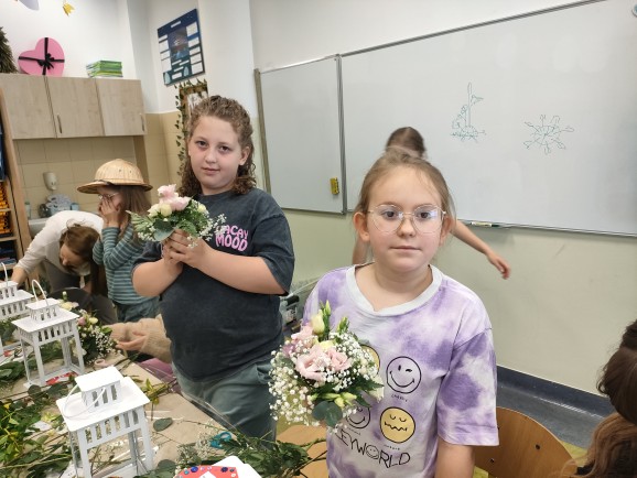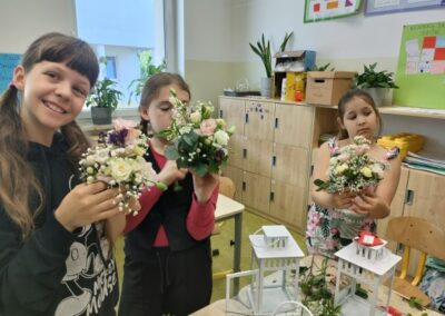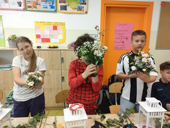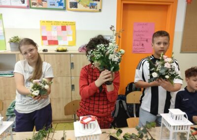 Podczas warsztatów uczniowie mieli okazję samodzielnie stworzyć kwiatowe kompozycje dla swoich mam. Było to nie tylko ciekawe doświadczenie artystyczne, ale również piękny sposób na okazanie wdzięczności i miłości bliskim osobom.