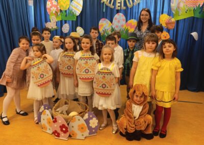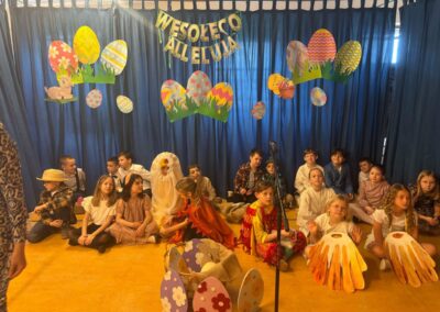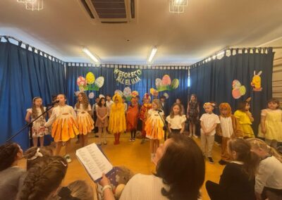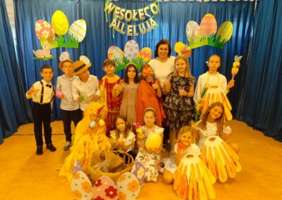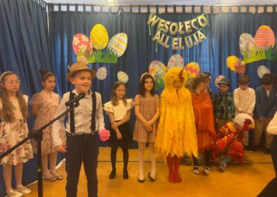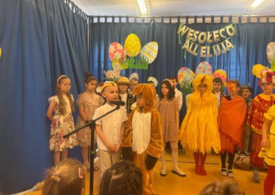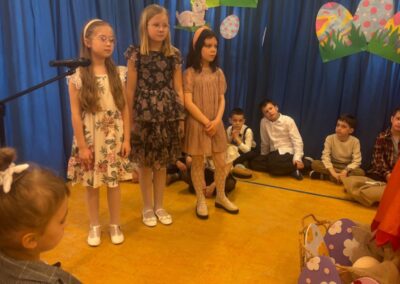 Z okazji zbliżających się Świąt Wielkanocnych uczniowie klas młodszych przygotowali wyjątkowe przedstawienie, wprowadzające całą społeczność szkolną w świąteczny nastrój. Były wiersze, piosenki oraz scenki nawiązujące do wielkanocnych tradycji, a wszystko zostało zaprezentowane z wielkim zaangażowaniem i radością.